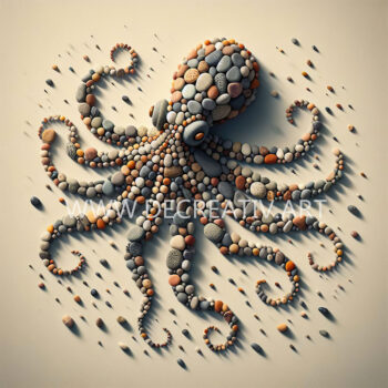 AI is masterfully used to enhance textures and vivid details, creating wall art that is visually captivating and one-of-a-kind. Witness the essence of nature’s beauty brought to life using the tactile allure of rocks and pebbles.