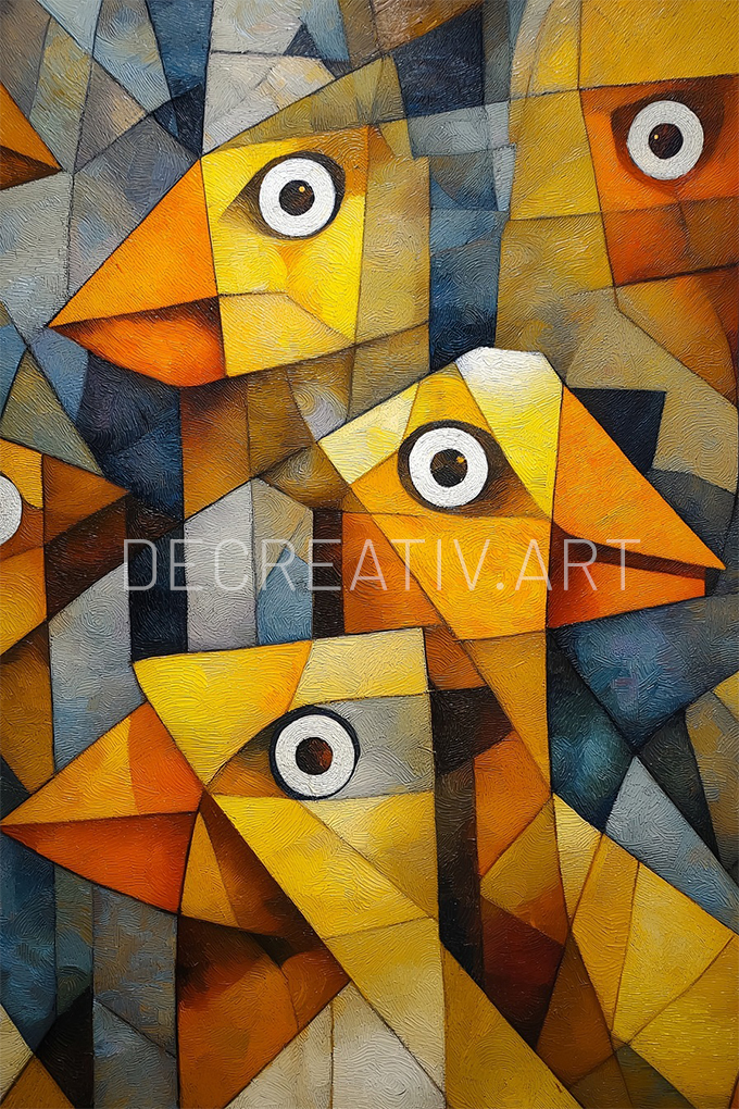 Enter a hush of fractured light and patient form โ€” a space where Cubismโ€™s legacy is translated into modern digital song. Here, planes converse and facets sing; every angle is an invitation to look again. These compositions are less about representation and more about memory: fragments of the world reassembled into new harmonies that quietly transform any interior.